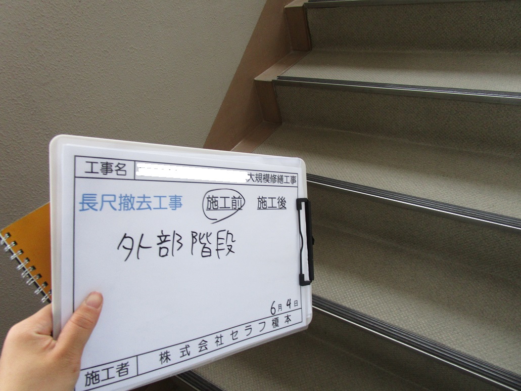 現在埼玉県内で施工中のマンションでは、階段部分の長尺シート撤去工事が行われました。